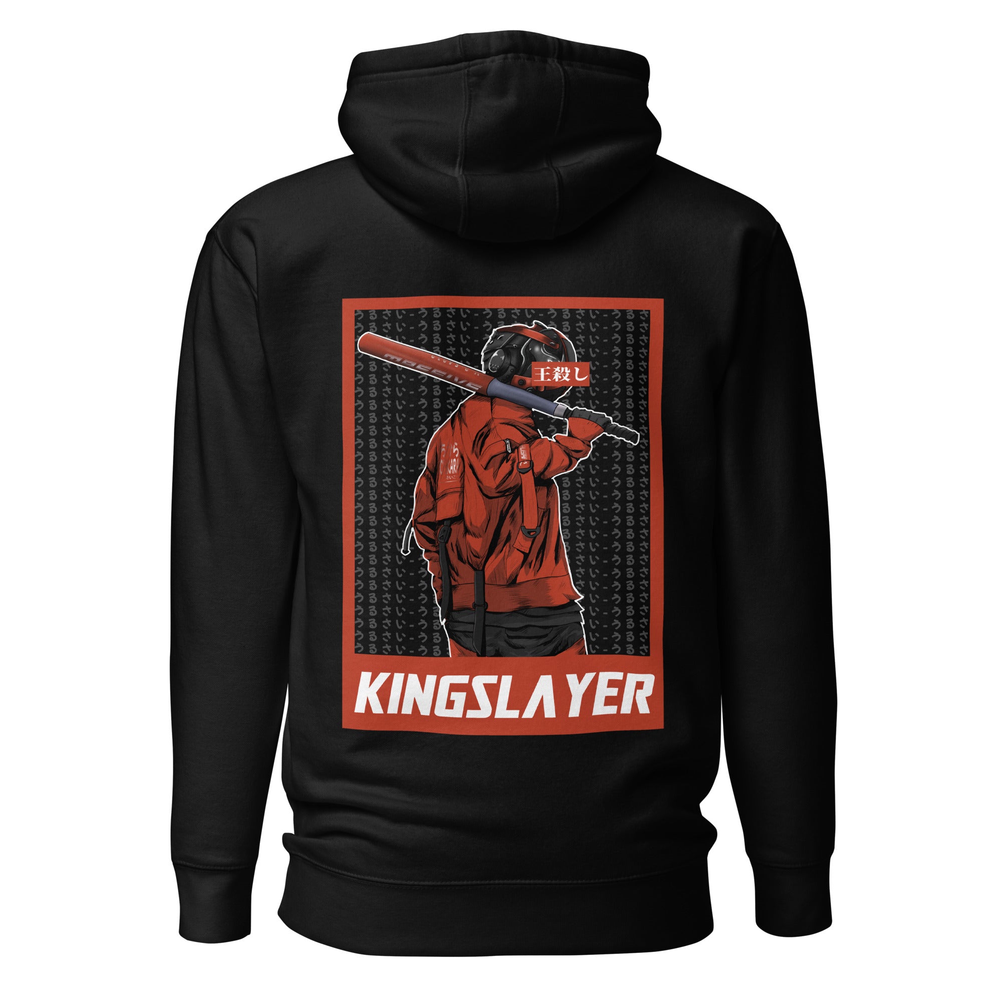 Our design, "Kingslayer" takes you on a journey to a futuristic universe where rebellion reigns. In this design, we see a man holding a baseball bat, symbolizing his determination to overthrow the established order. His aggressive posture and determined robotic gaze show that he is ready to do whatever it takes to achieve his goal. This design is perfect for those who seek to express their love for the anime/manga universe in a rebellious and daring way.
